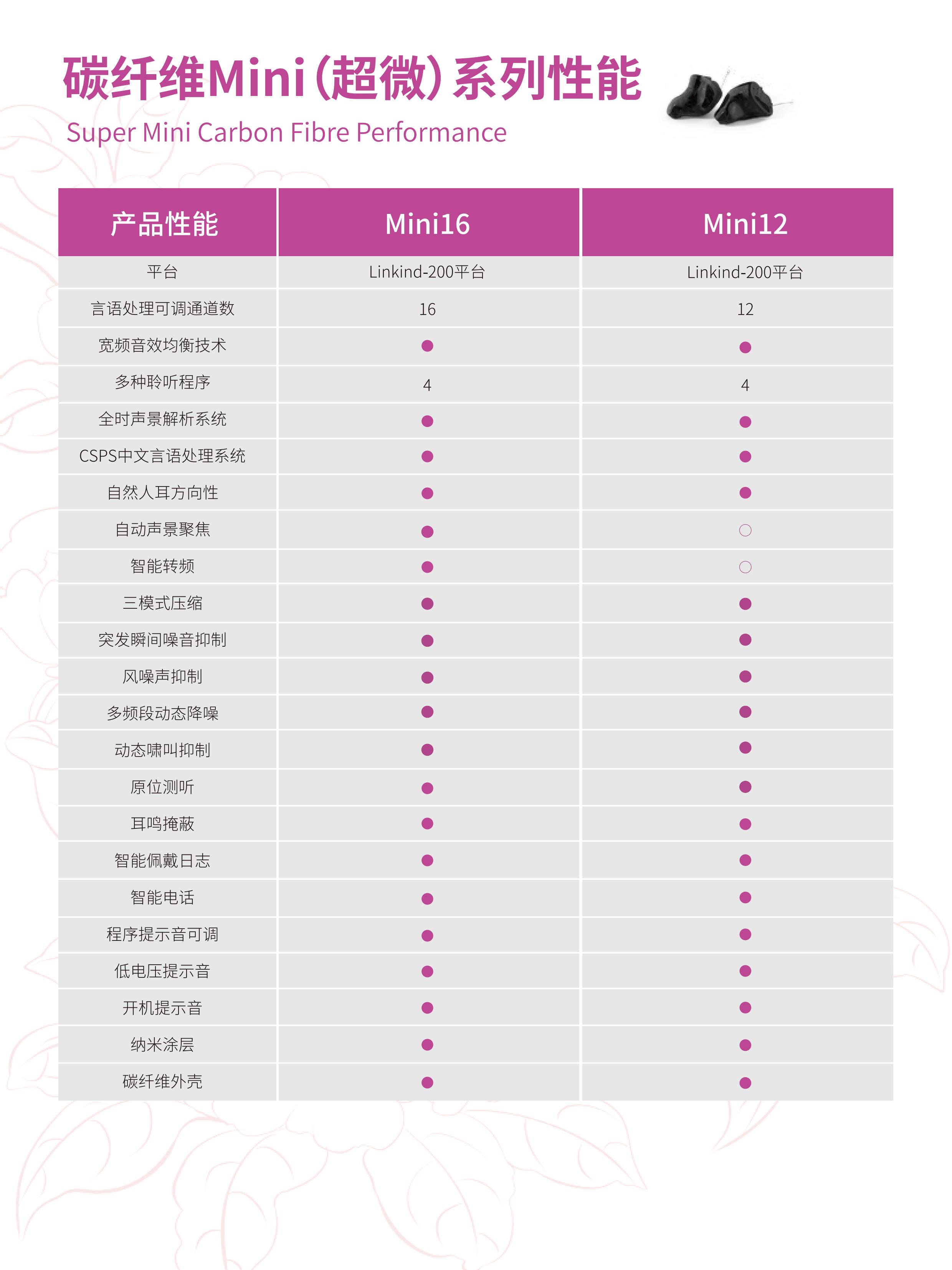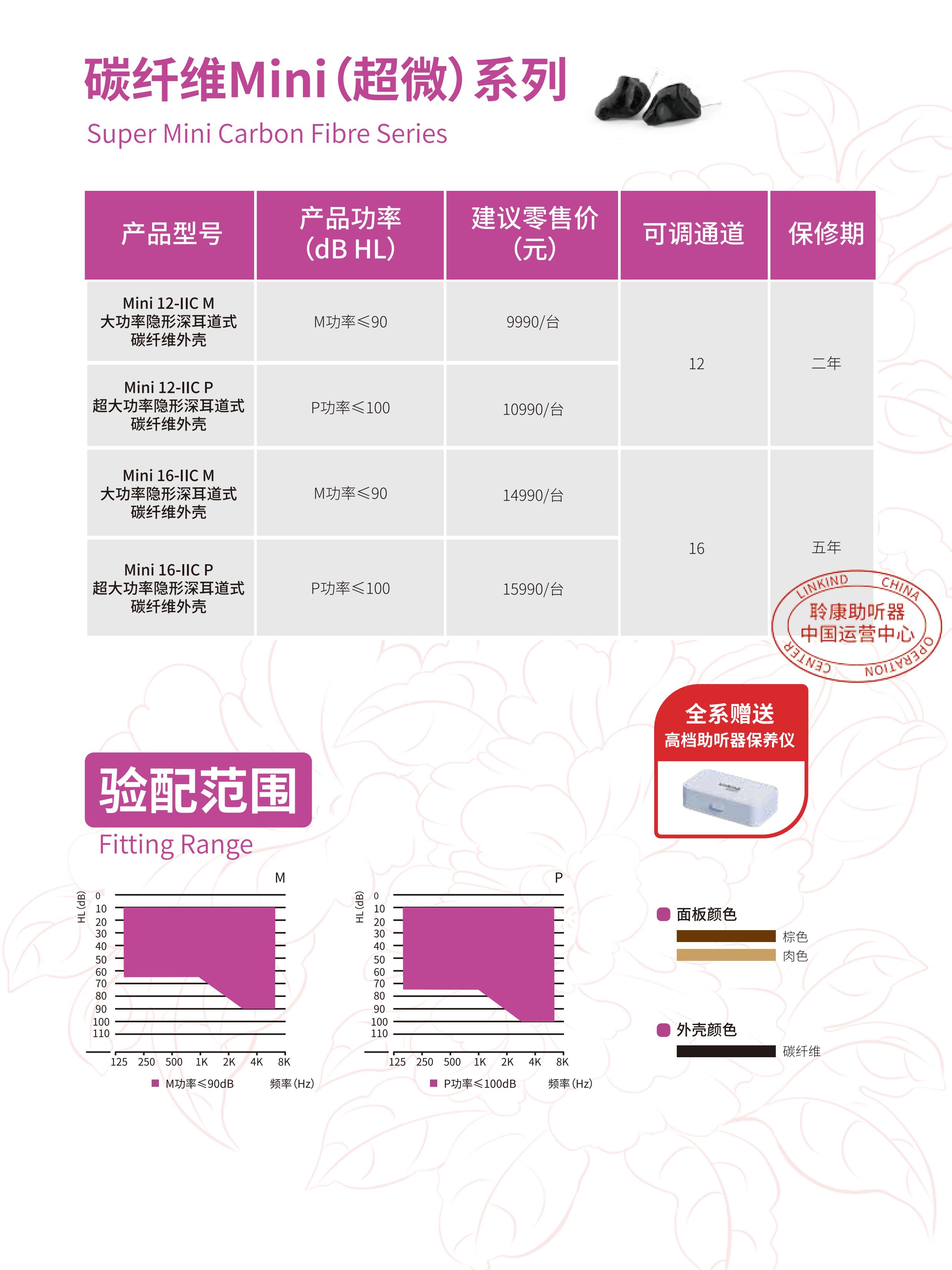 產品名稱:聆康助聽器 碳纖維Mini(超微)系列 零售價格:¥9990.00 品牌系列:聆康助聽器 聽損情況:重度聽損(61-80db) 外形樣式:耳內式 適用人群:老年人 保修期限:2 年 價格范圍:中端(5000-15000)