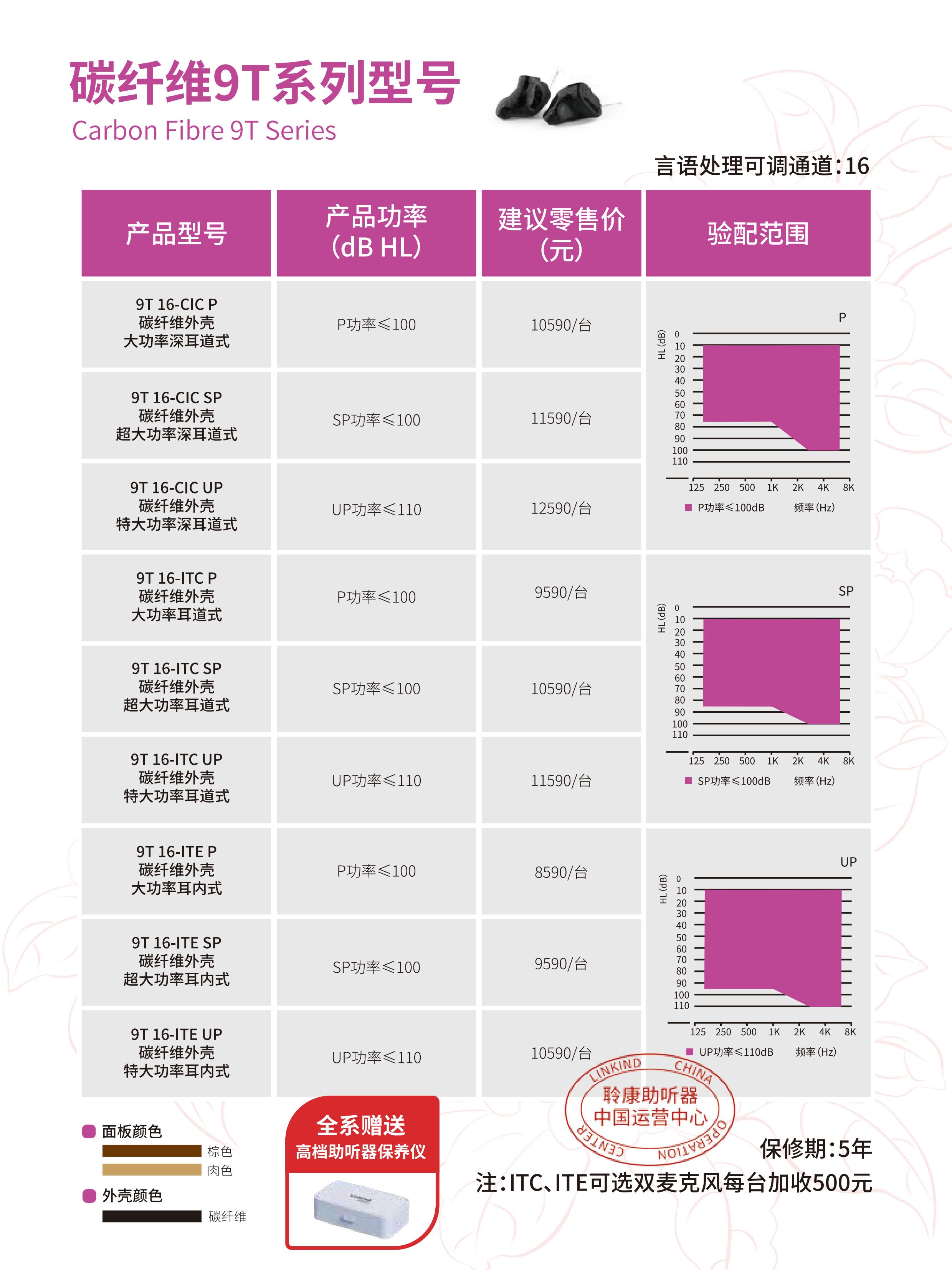 產品名稱:聆康助聽器 碳纖維9T系列 零售價格:¥10590.00 品牌系列:聆康助聽器 聽損情況:重度聽損(61-80db) 外形樣式:耳內式 適用人群:老年人 保修期限:5 年 價格范圍:中端(5000-15000)